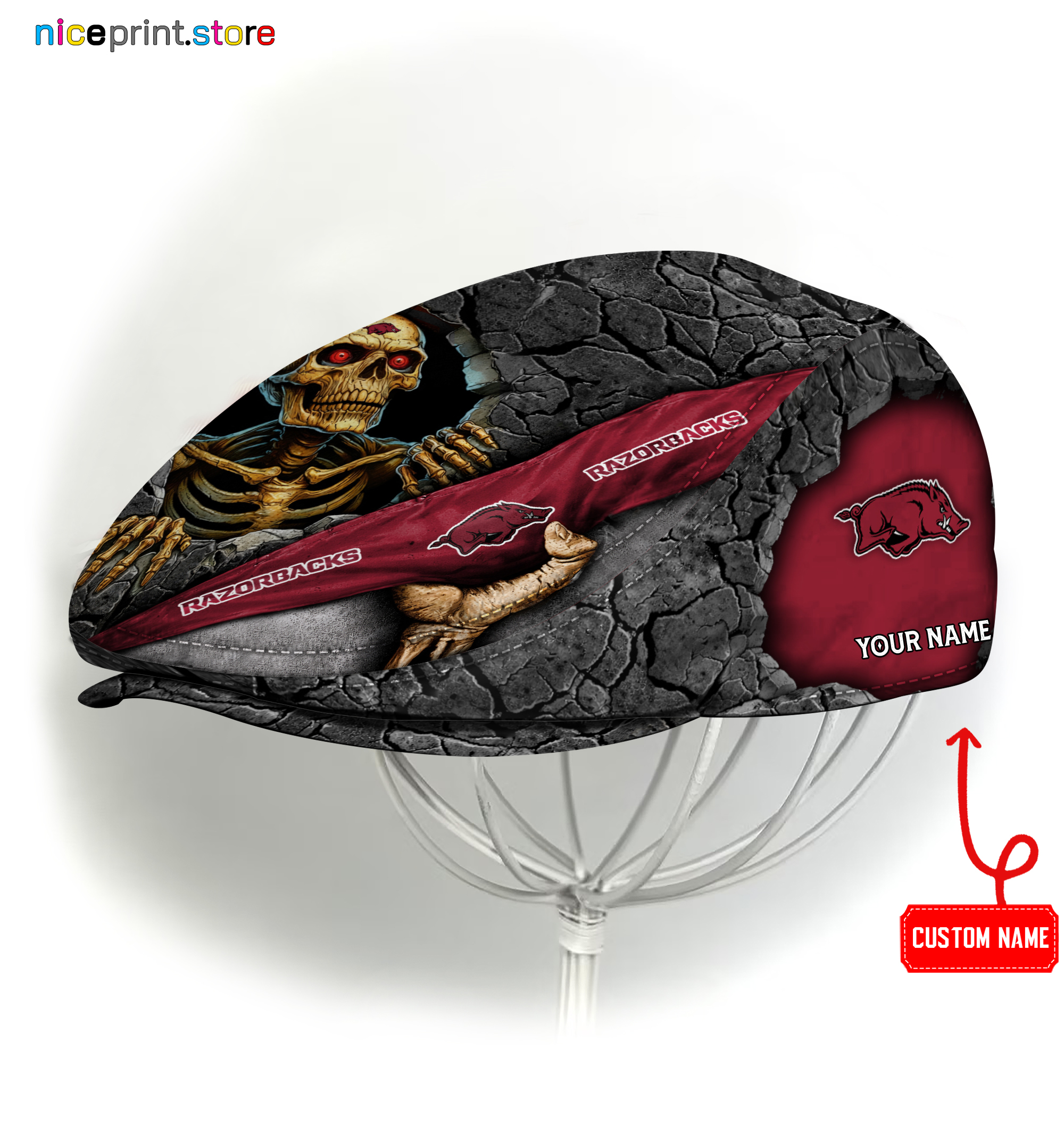 Arkansas Razorbacks NCAA Jeff Cap, Flat Cap, Driving Cap M84