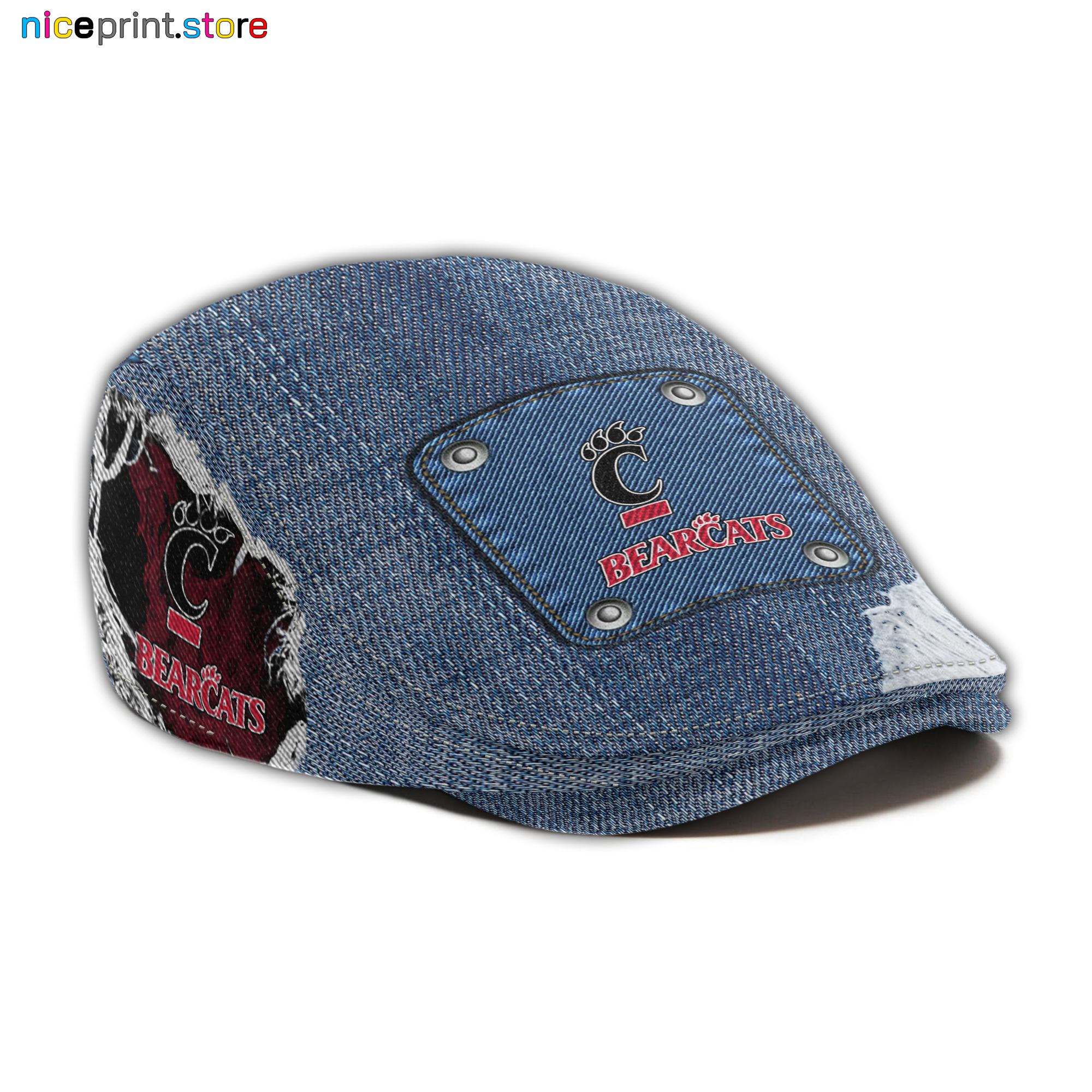 Cincinnati Bearcats NCAA3 Jeff Cap, Flat Cap, Driving Cap M82