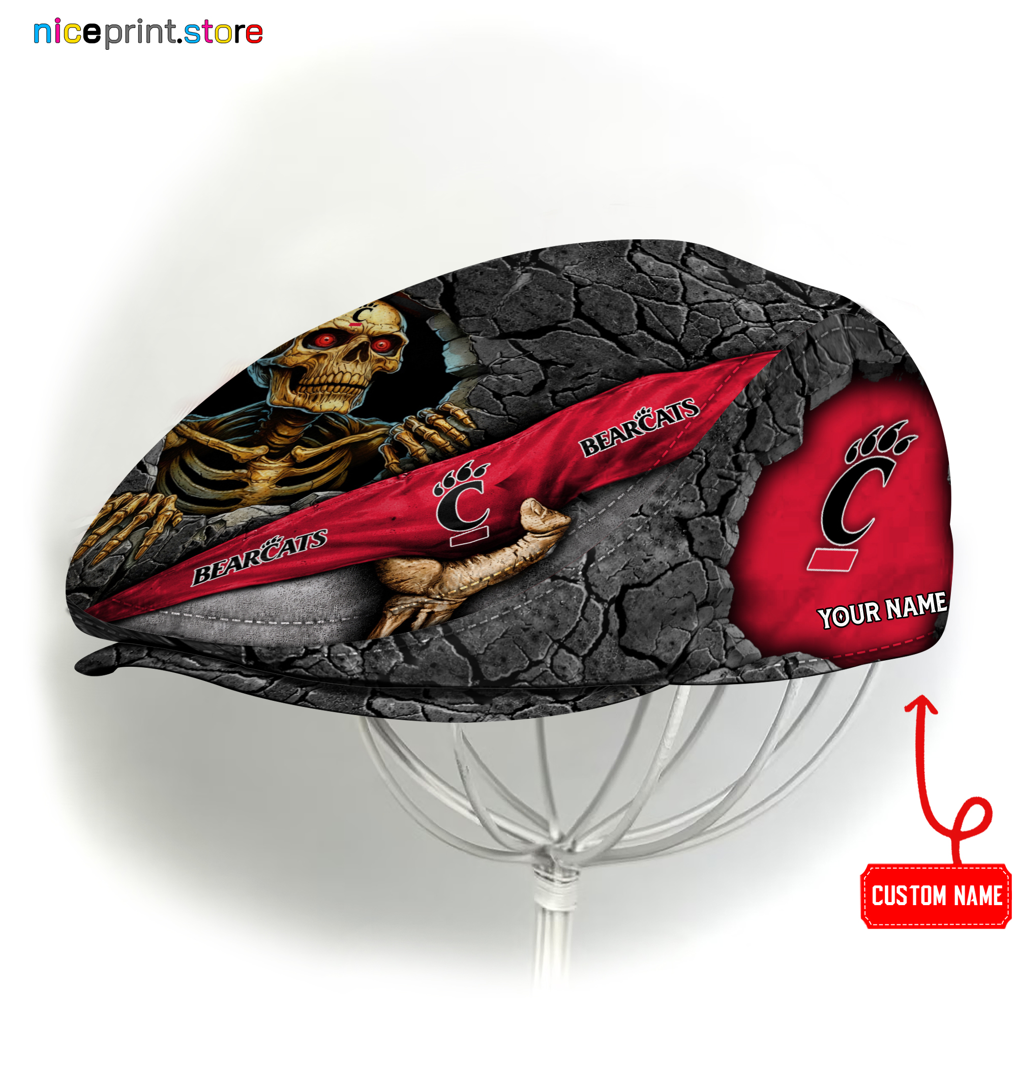 Cincinnati Bearcats NCAA3 Jeff Cap, Flat Cap, Driving Cap M84