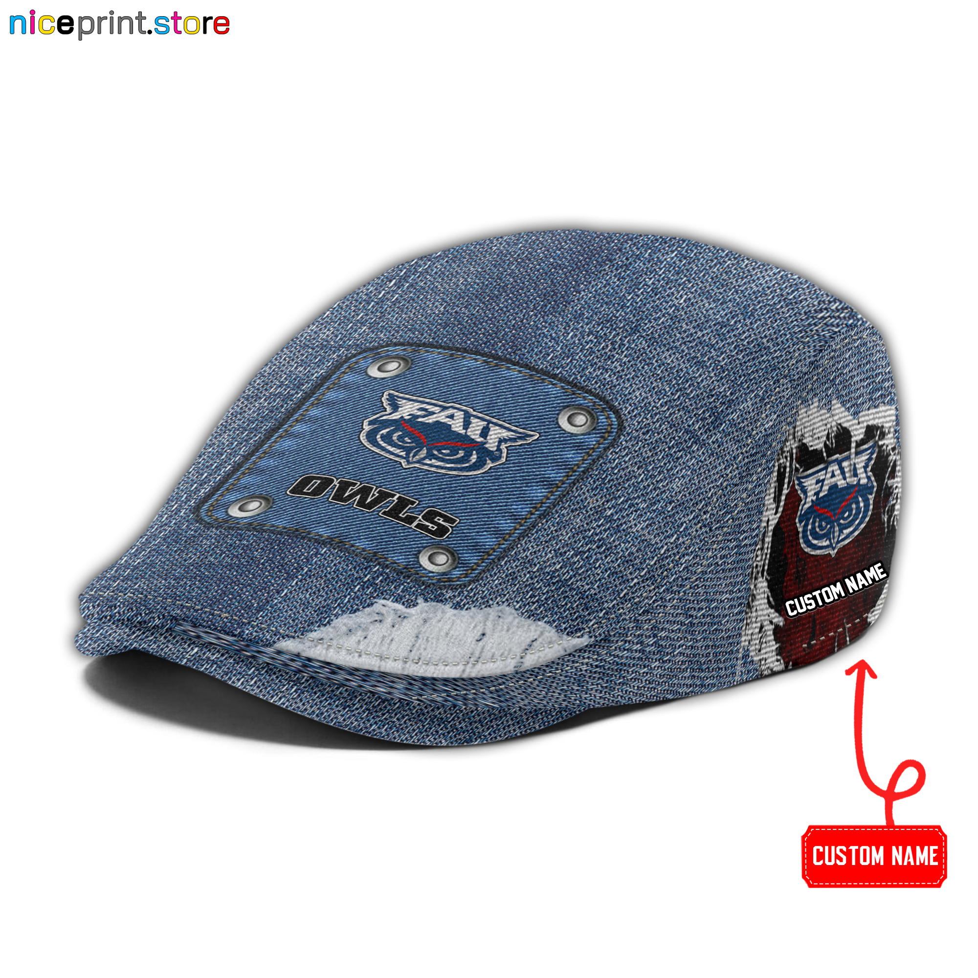Florida Atlantic Owls NCAA3 Jeff Cap, Flat Cap, Driving Cap M82