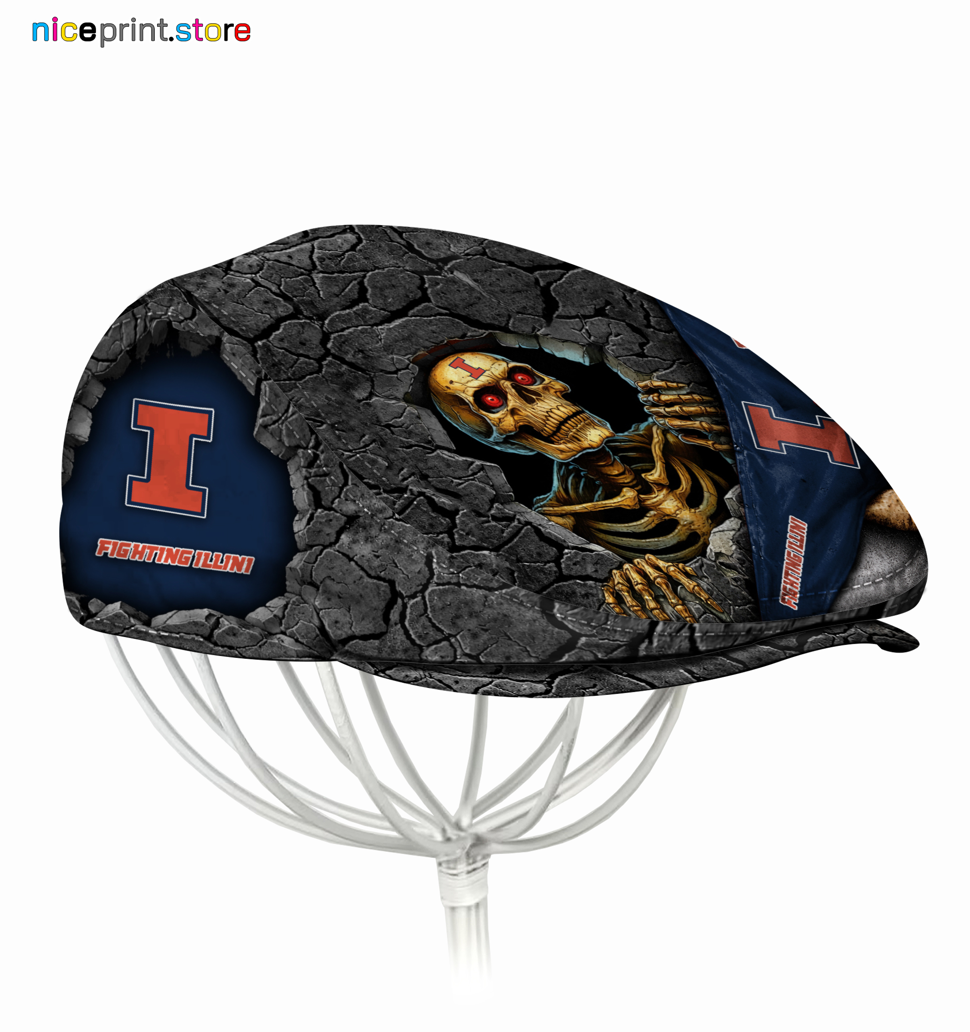 Illinois Fighting Illini NCAA3 Jeff Cap, Flat Cap, Driving Cap M84