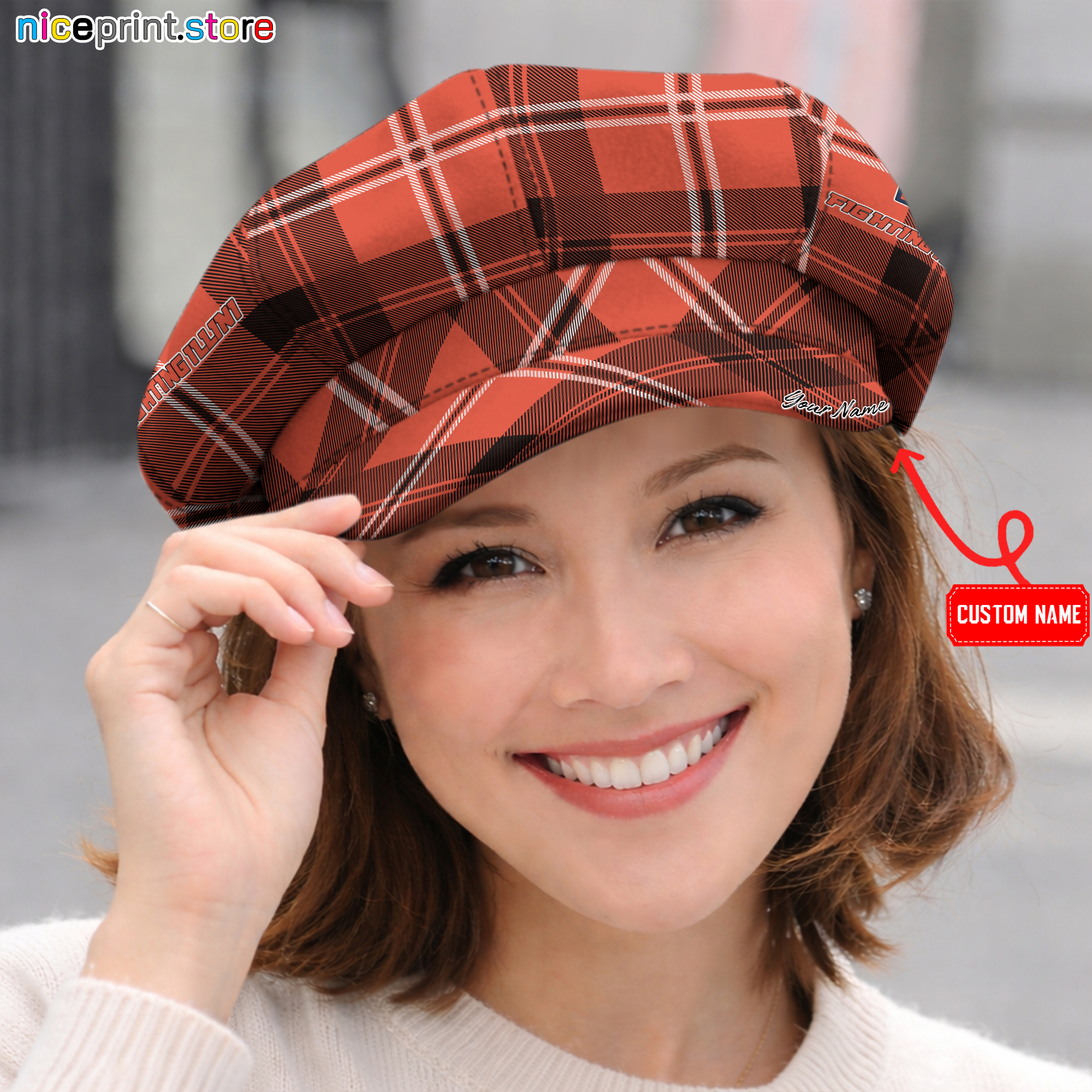 Illinois Fighting Illini NCAA3 Ladies Women Hat, Newsboy Hat M01