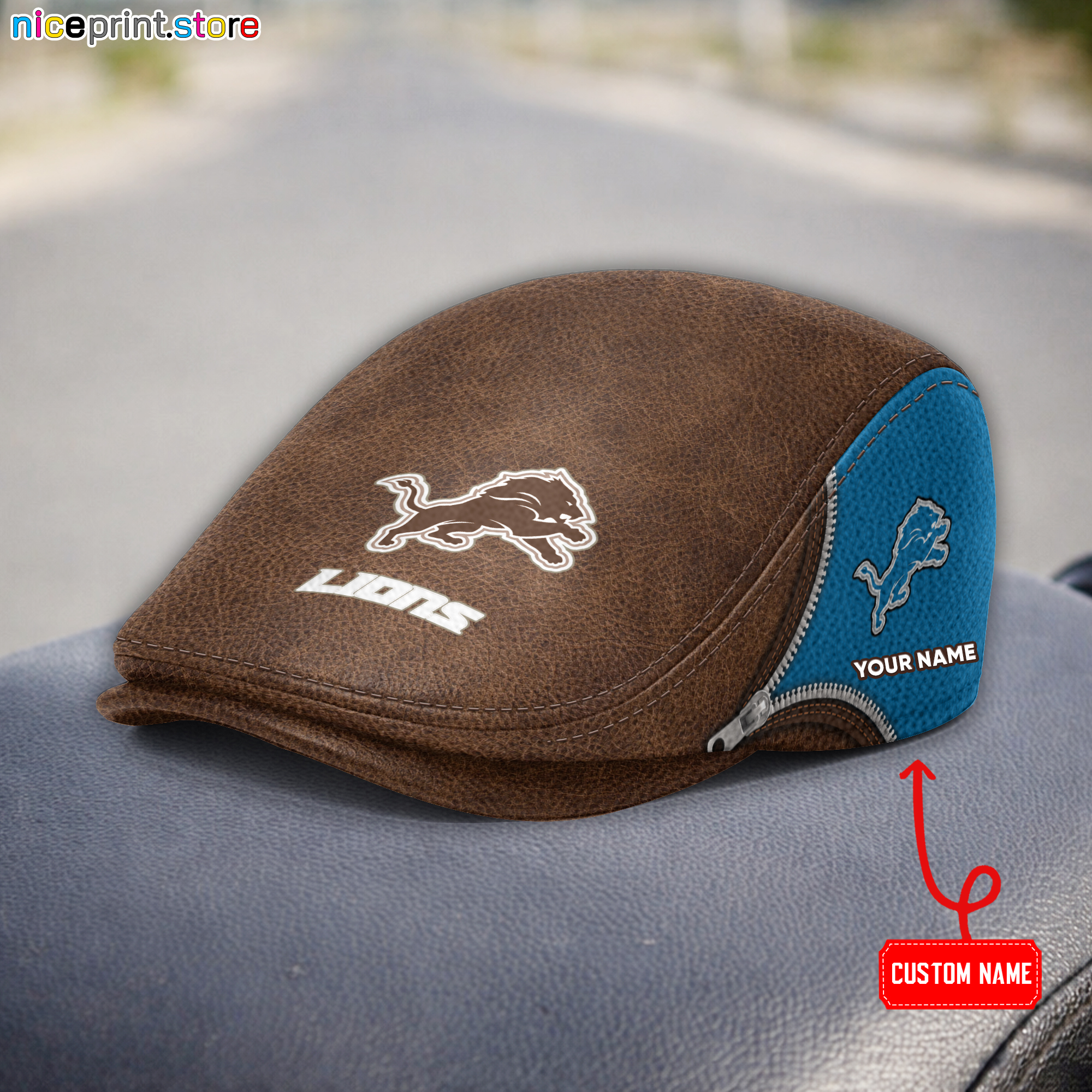 Leather-Detroit Lions NFL Leather Beret Cap M27