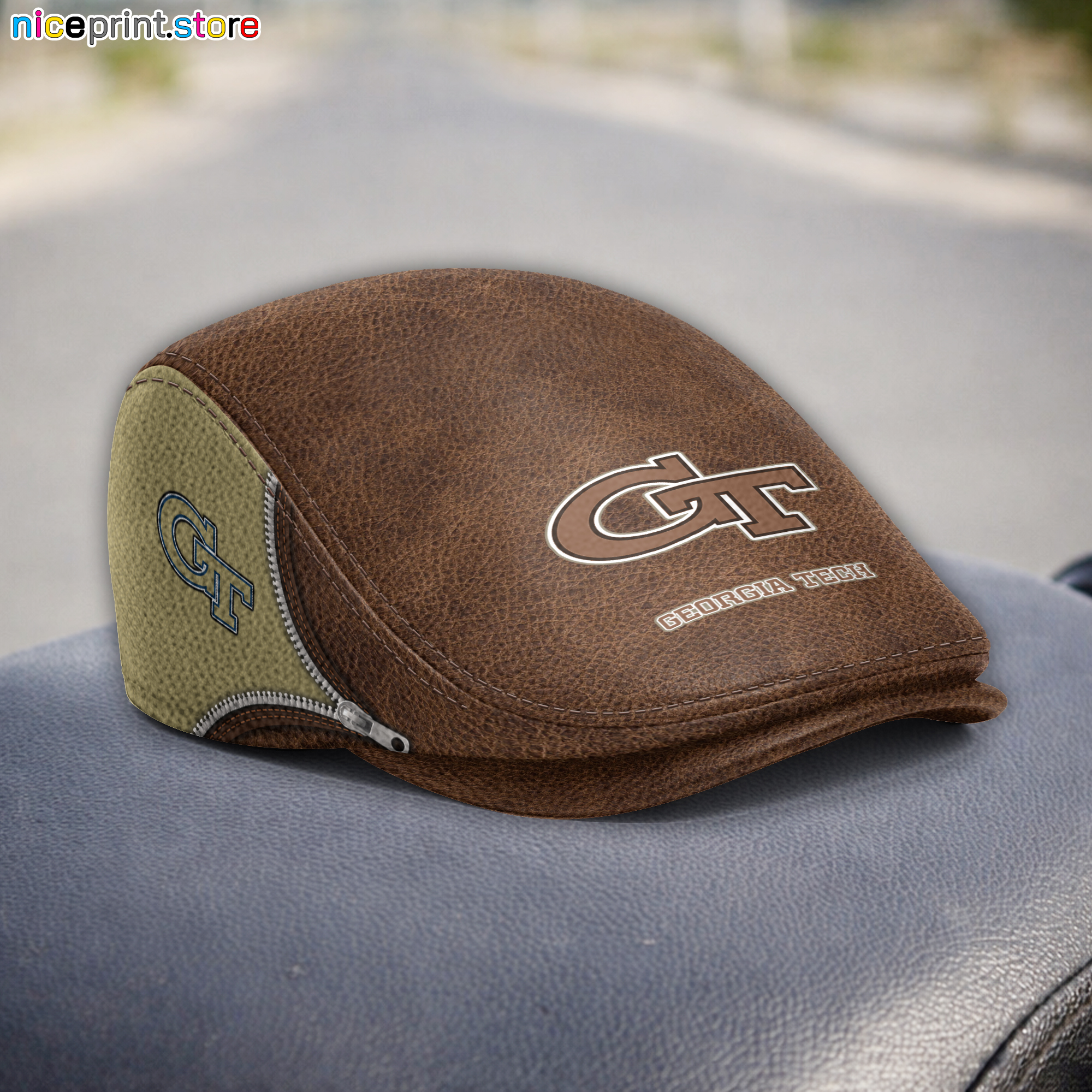 Leather-Georgia Tech Yellow Jackets NCAA3 Leather Beret Caps M27