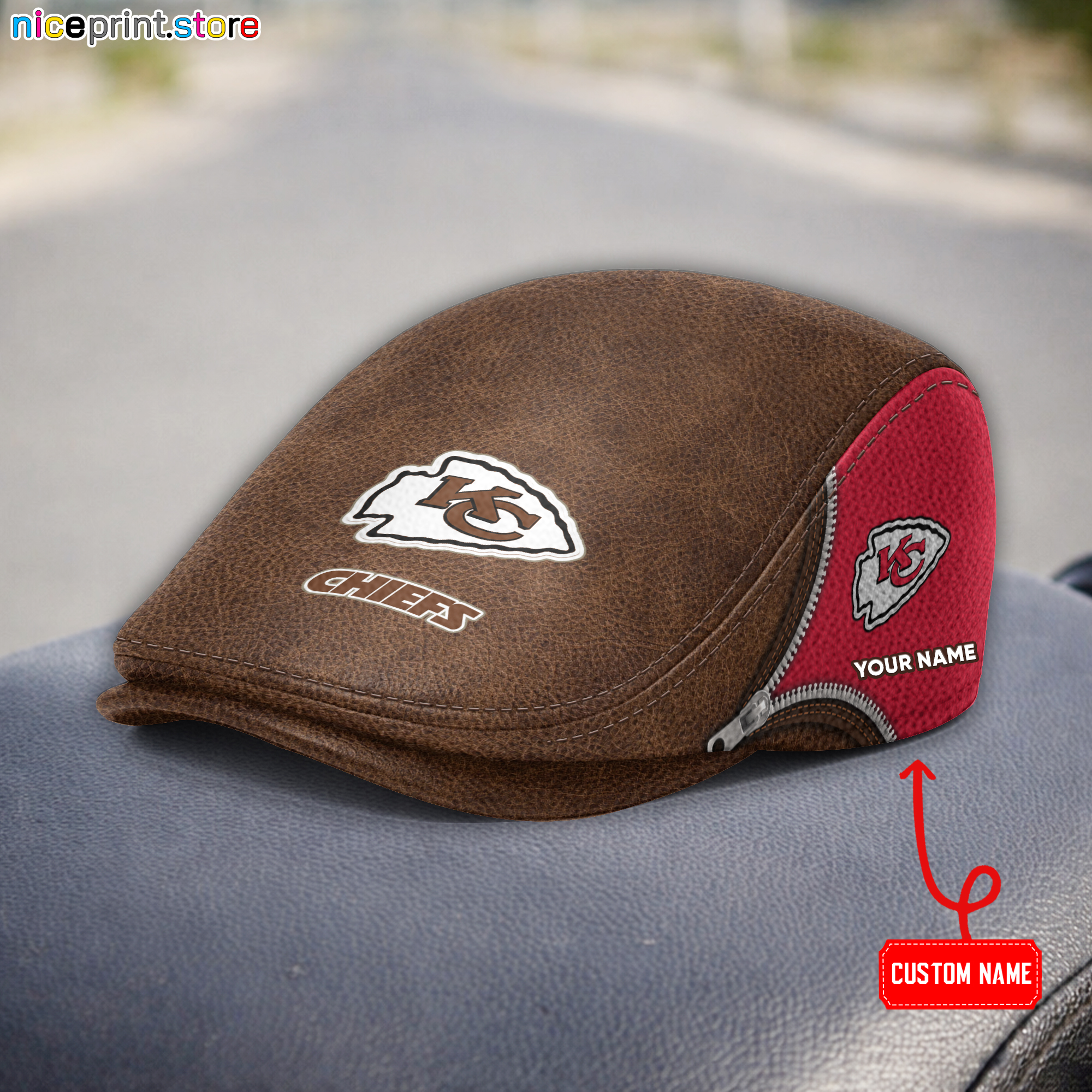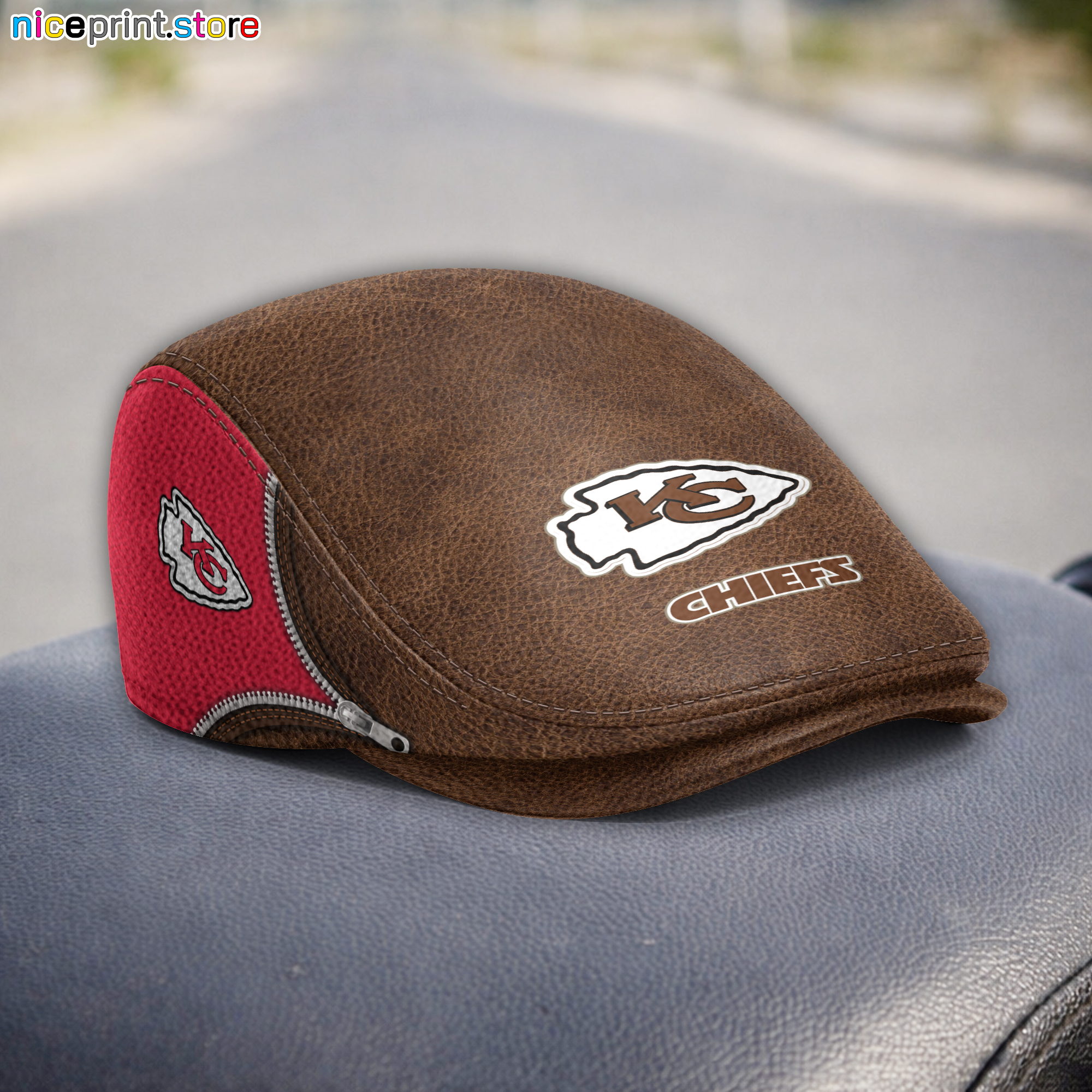 Leather-Kansas City Chiefs NFL Leather Beret Cap M27