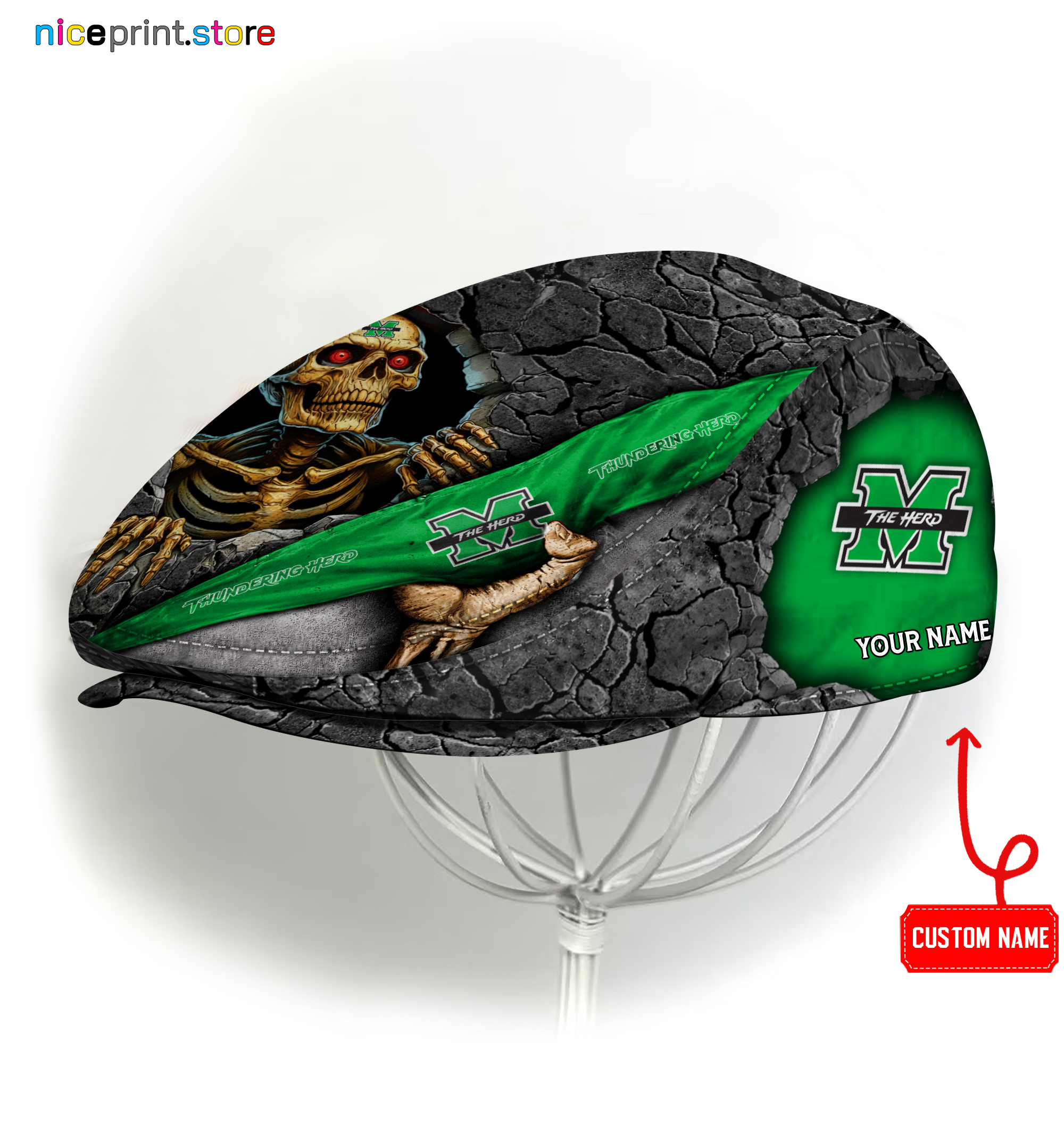 Marshall Thundering Herd NCAA2 Jeff Cap, Flat Cap, Driving Cap M84