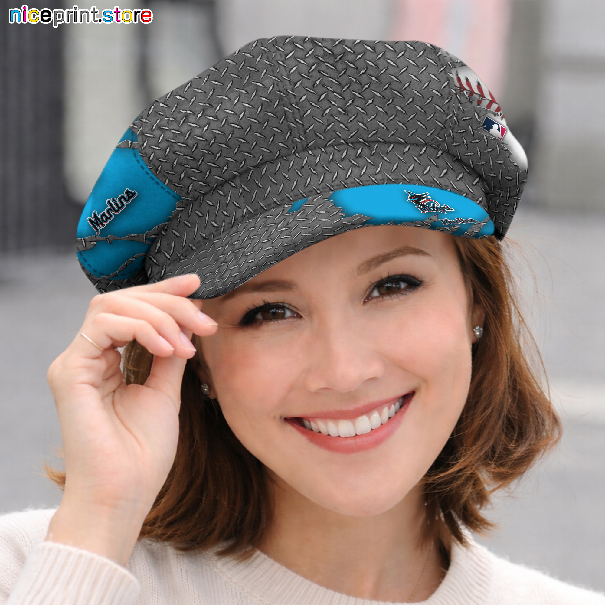 Miami Marlins MLB Women Newsboy Hat, Ladies Women Hat M01