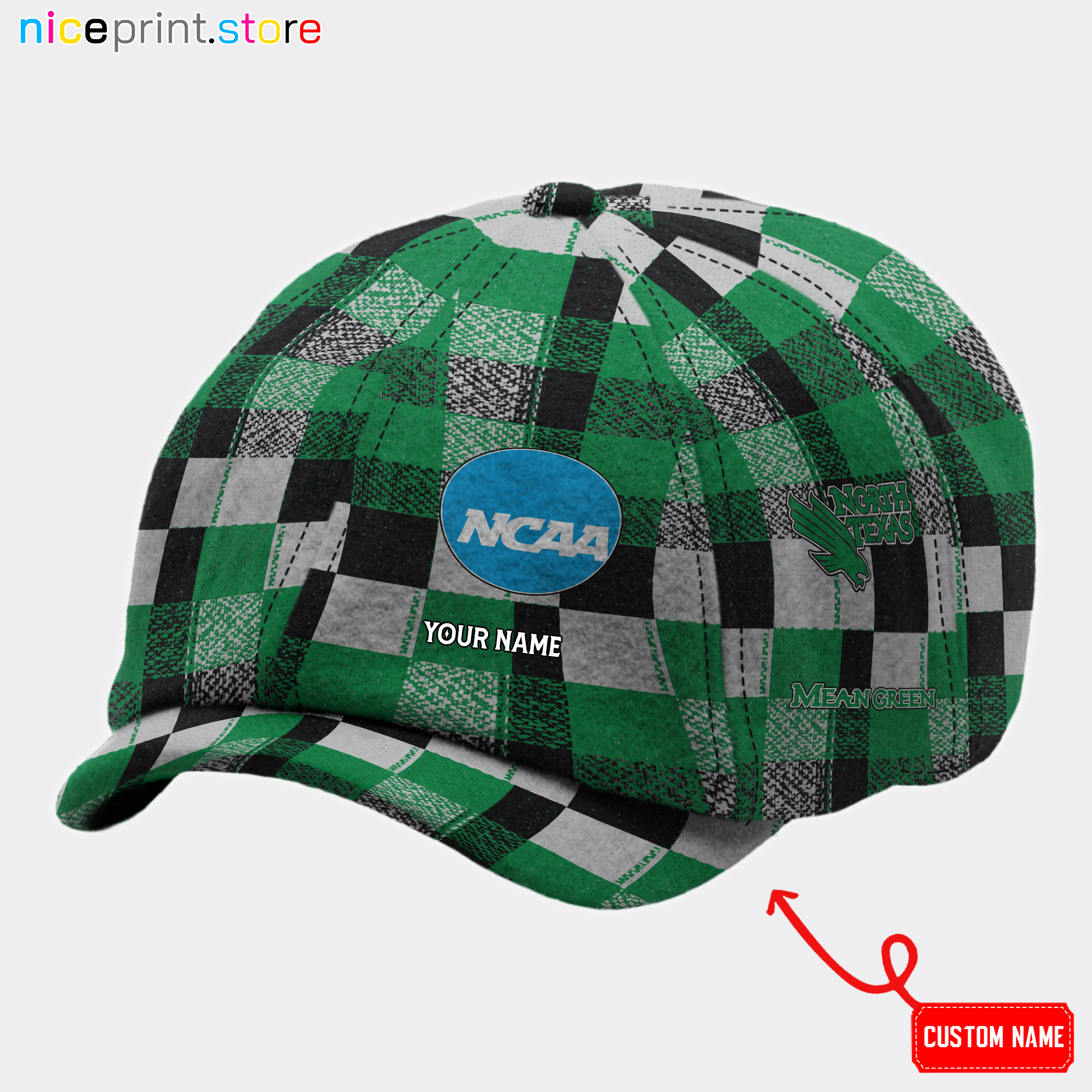 North Texas Mean Green NCAA4 Baker Boy Hat, Newsboy Hat M01