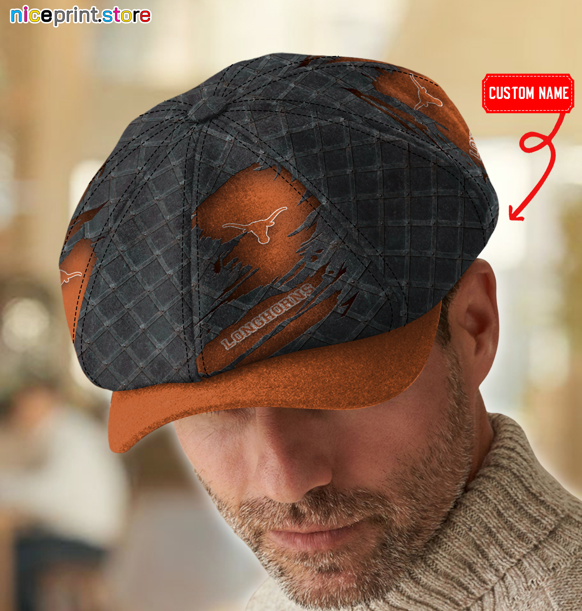 Texas Longhorns NCAA Baker Boy Cap – Newsboy Cap M09