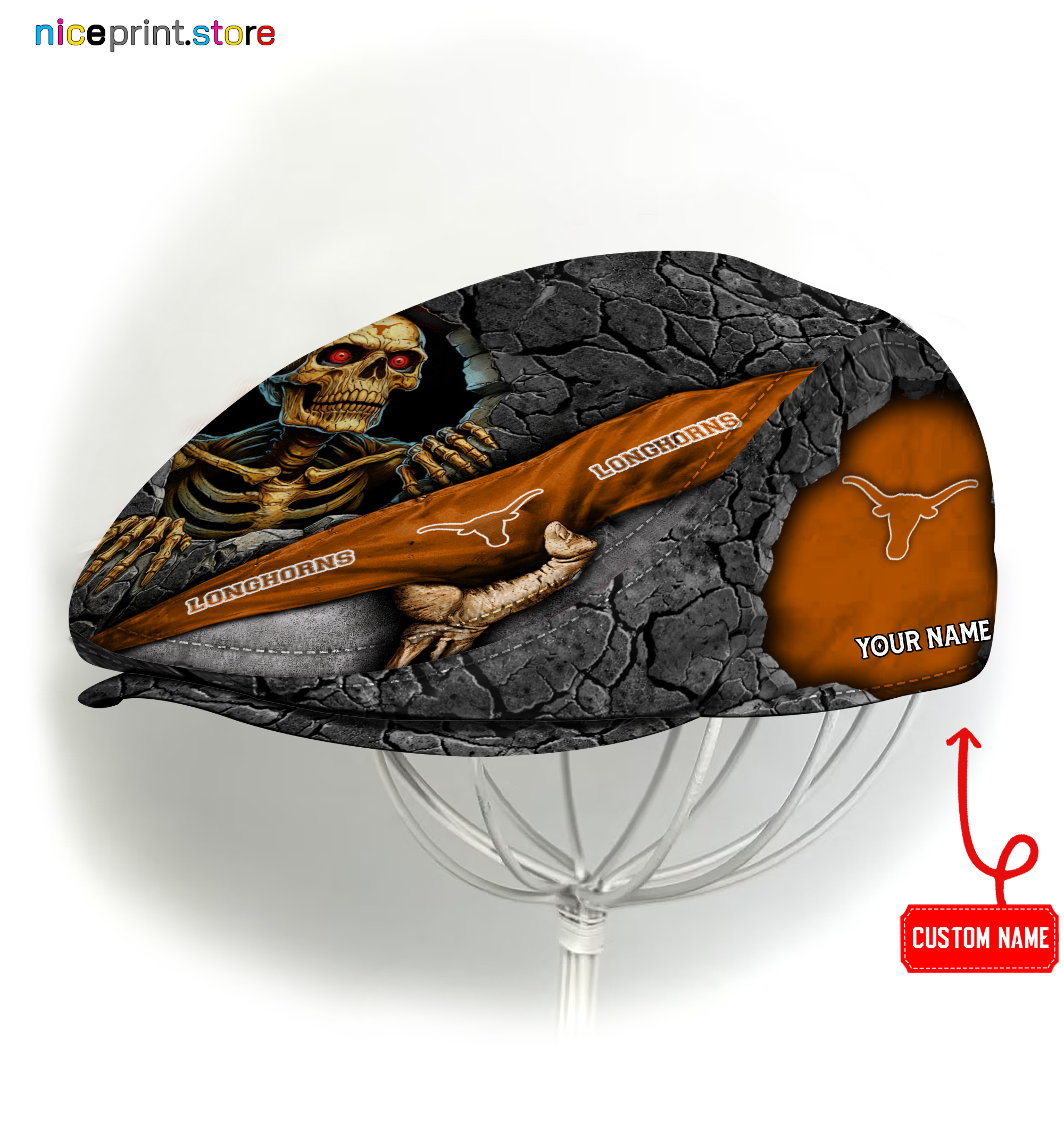 Texas Longhorns NCAA Jeff Cap, Flat Cap, Driving Cap M84