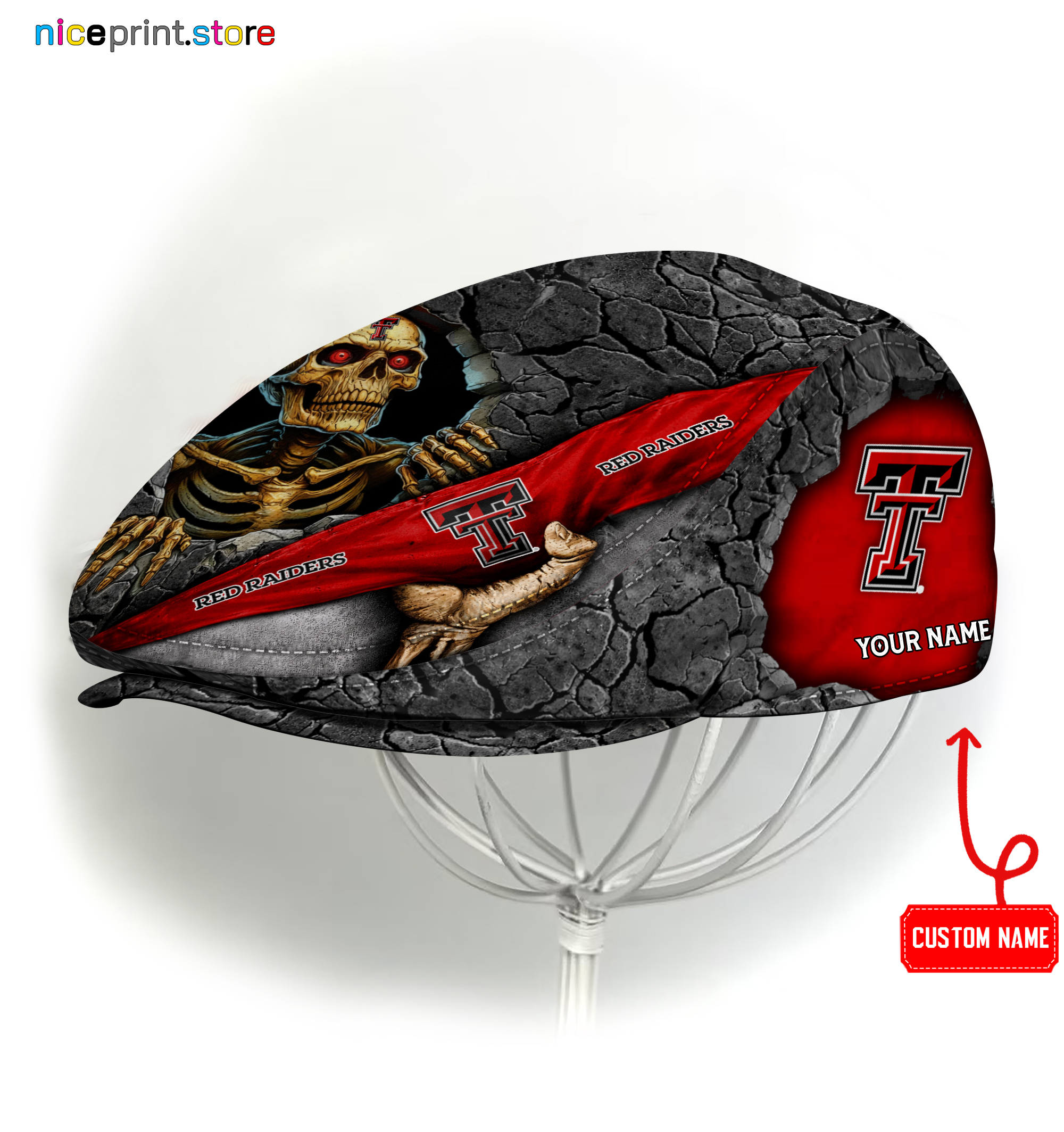 Texas Tech Red Raiders NCAA3 Jeff Cap, Flat Cap, Driving Cap M84