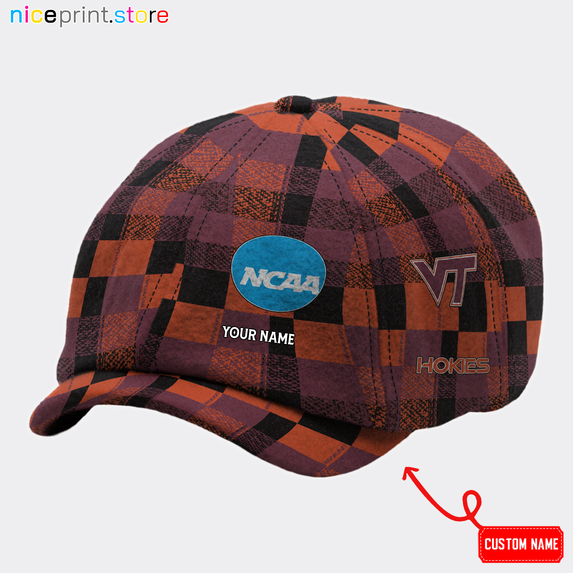 Virginia Tech Hokies NCAA2 Baker Boy Hat, Newsboy Hat M01