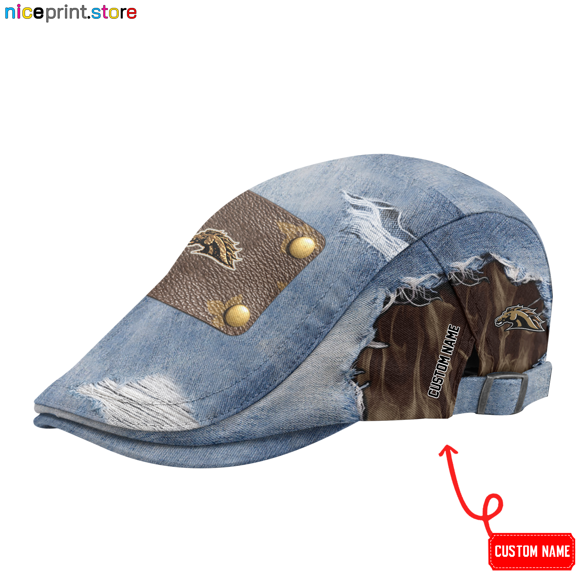 The premium beret-style baseball cap is a classic flat-brimmed hat. It features adjustable buckles on both sides.